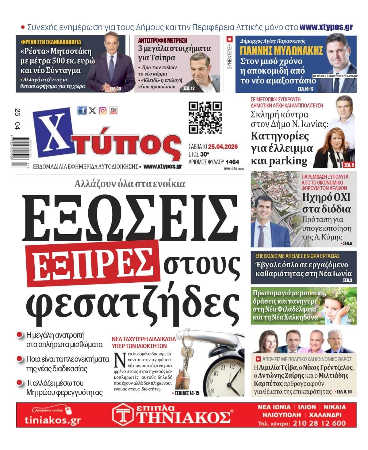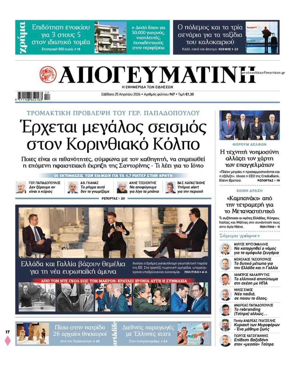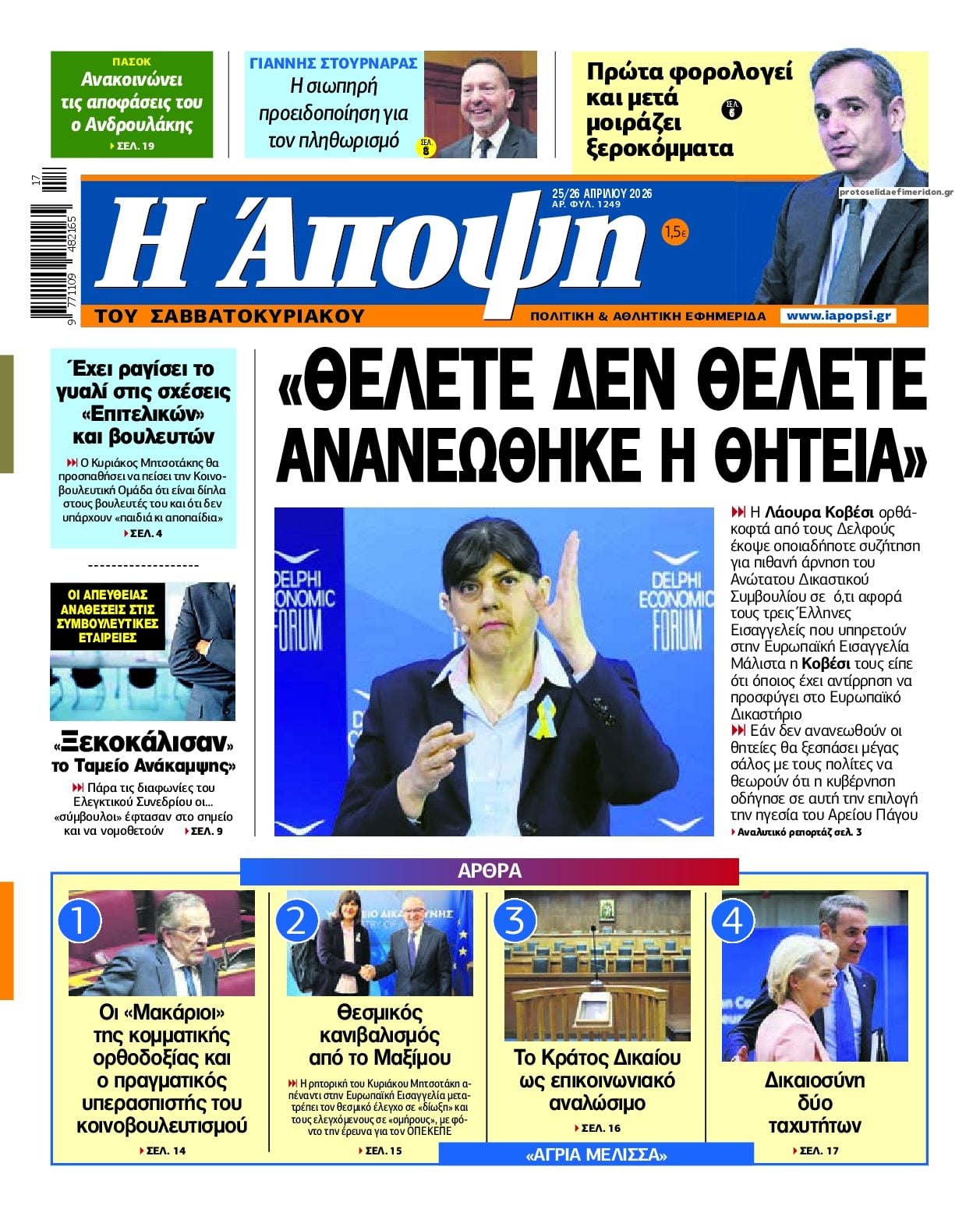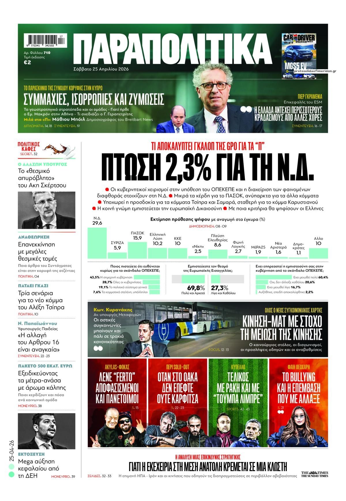 Οι πολιτικές εφημερίδες 25/4/2026