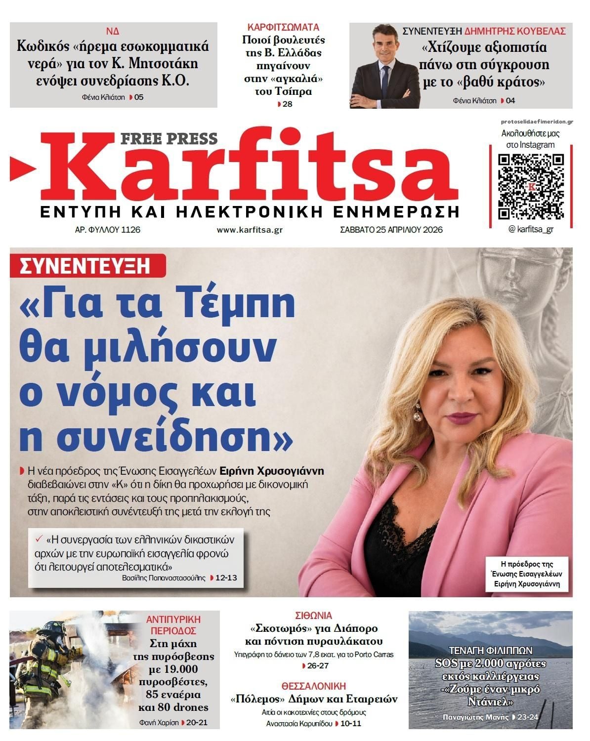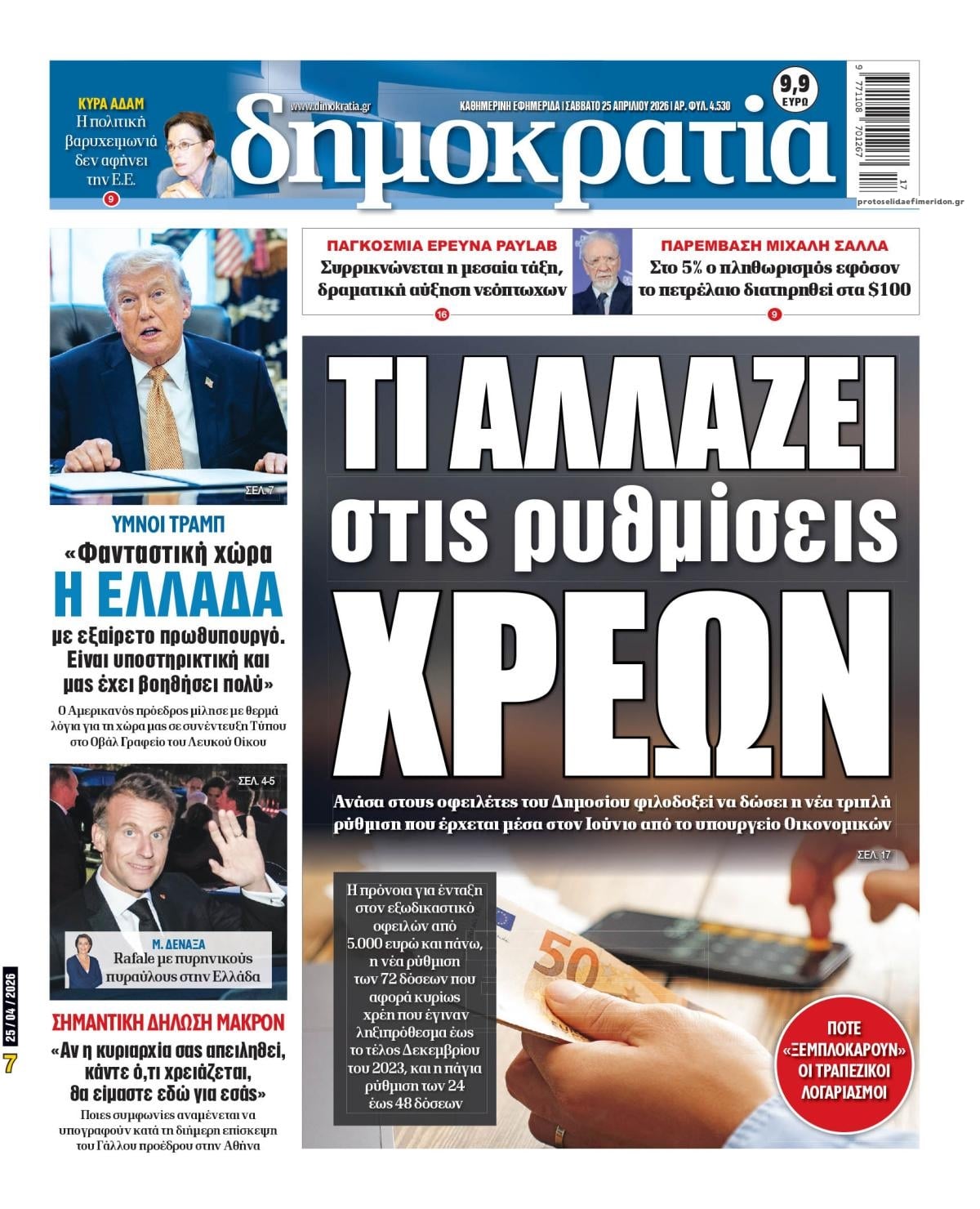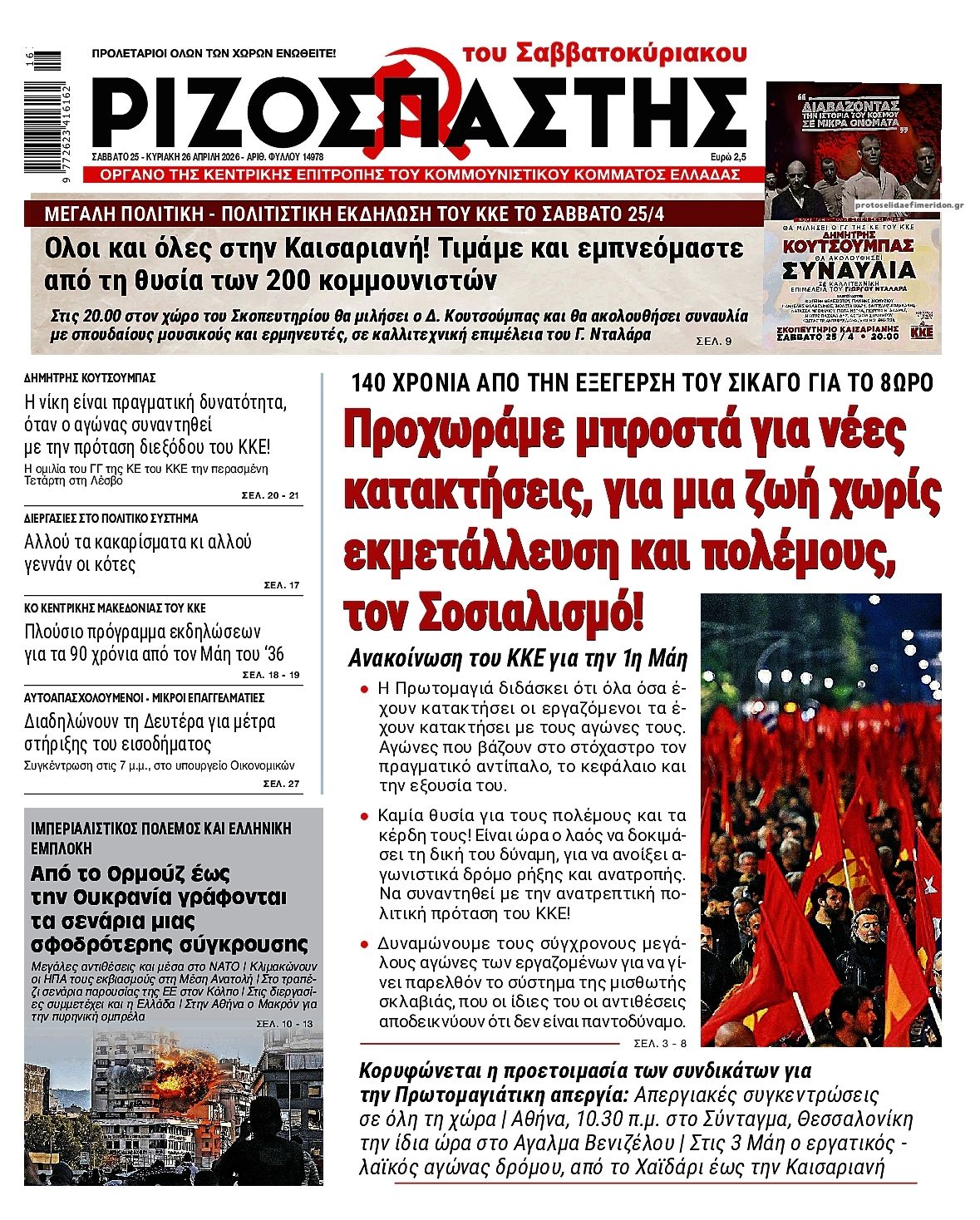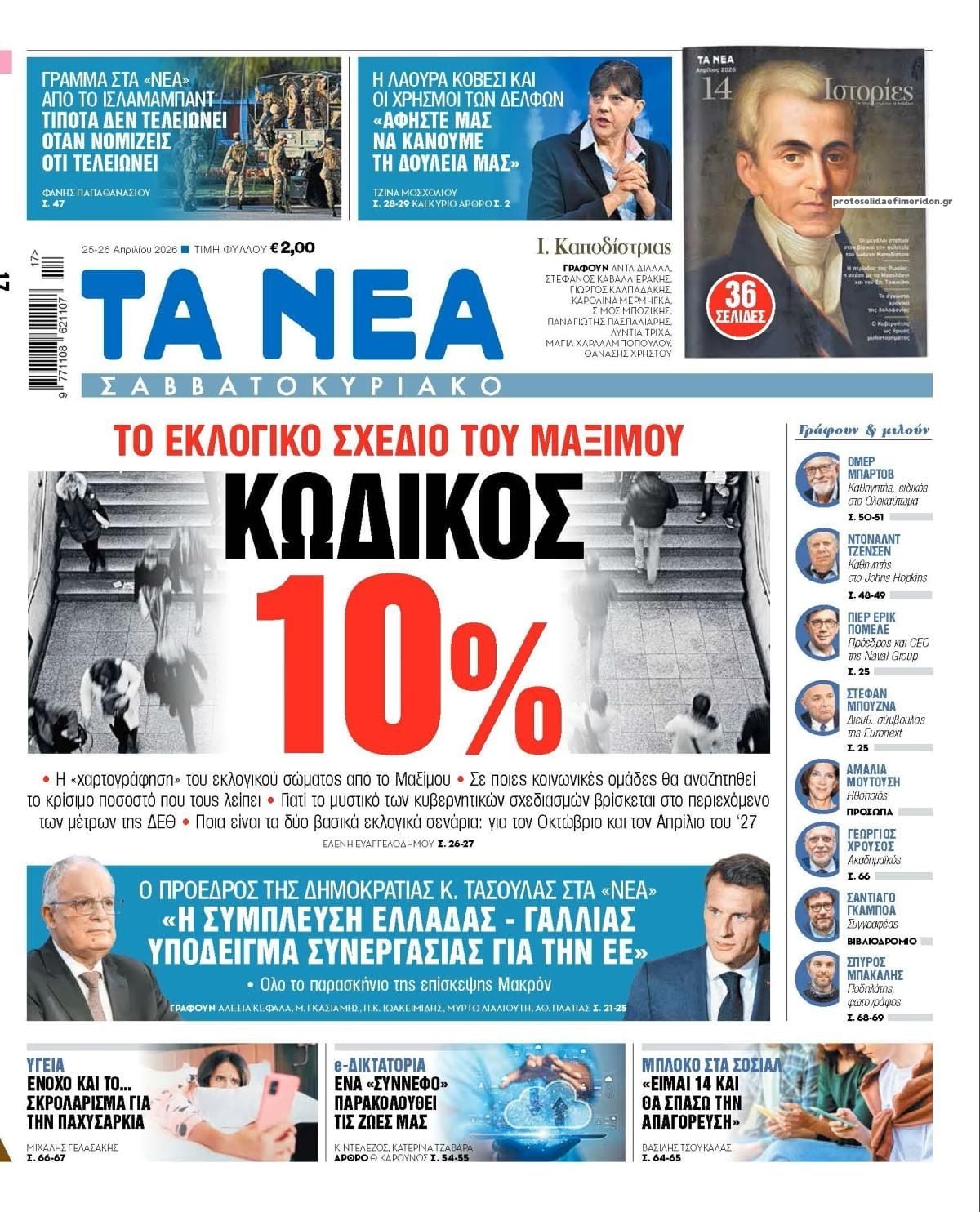 Οι πολιτικές εφημερίδες 25/4/2026