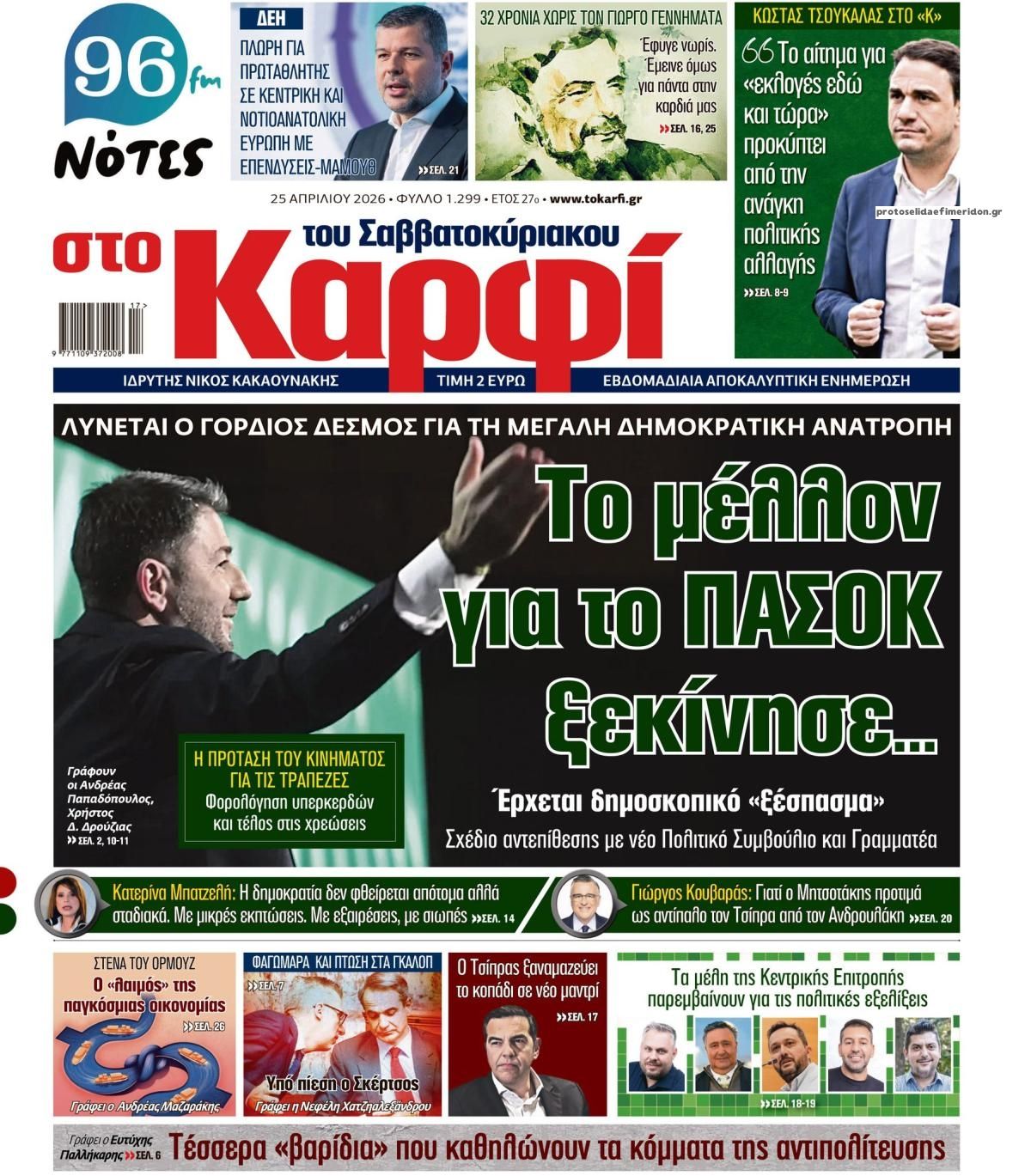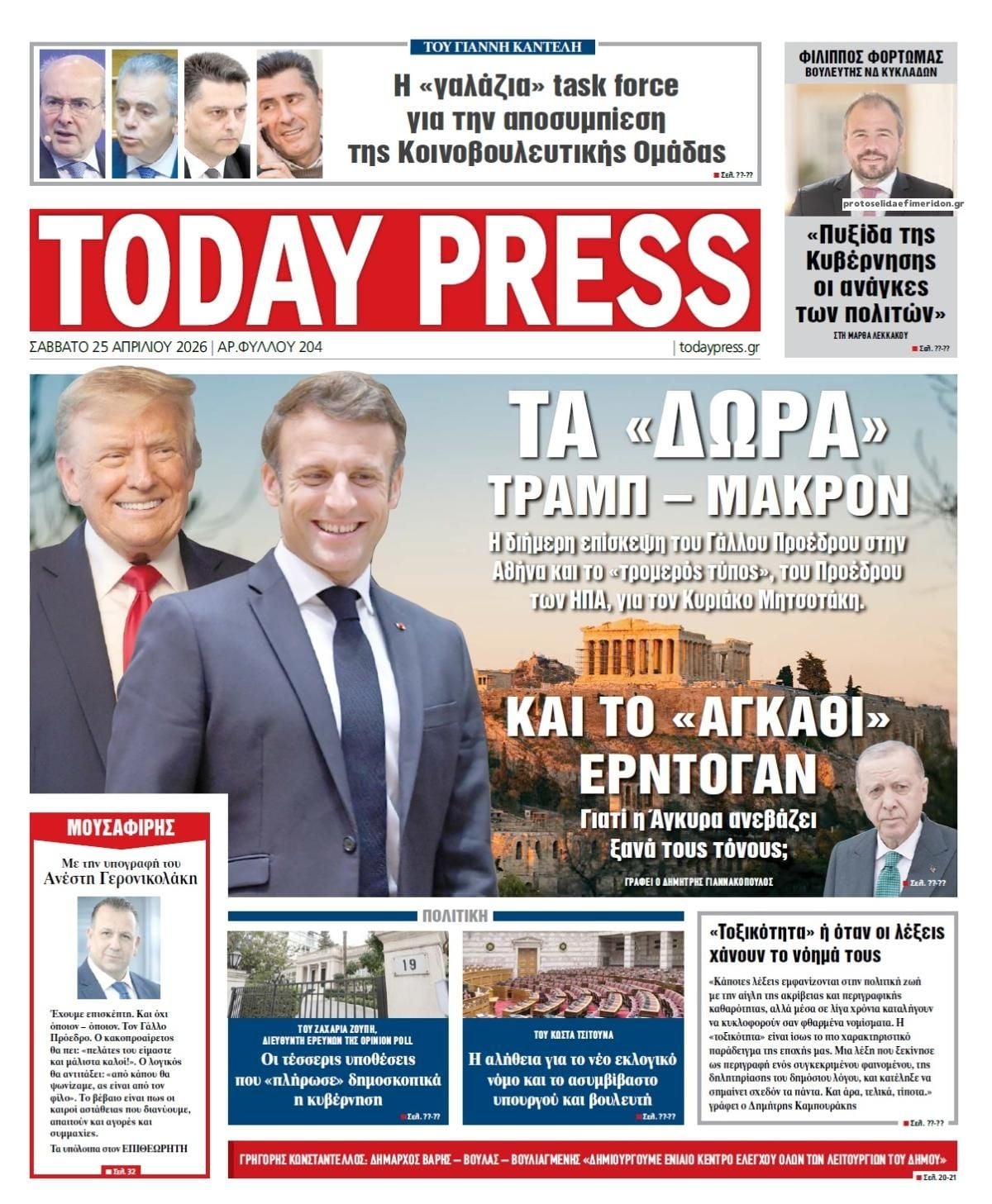Διαβάστε τα πρωτοσέλιδα από τις πολιτικές εφημερίδες, σήμερα 25/4/2026.