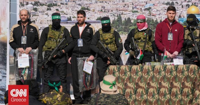 Στα πλάνα που καταγράφηκαν, οι όμηροι, που αφέθηκαν ελεύθεροι σε μια από τις ομαλότερες παραδόσεις που έχουν πραγματοποιηθεί μέχρι στιγμής από την έναρξη της εκεχειρίας στη Γάζα, φαίνονται να είναι σε καλή φυσική κατάσταση.