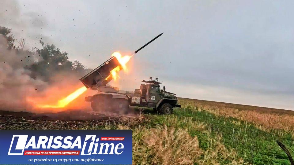 Σε αυτή τη φωτογραφία που τραβήχτηκε από βίντεο που διένειμε η Υπηρεσία Τύπου του ρωσικού Υπουργείου Άμυνας, ένας ρωσικός αυτοκινούμενος πολλαπλός εκτοξευτής πυραύλων “Grad” των 122 χιλιοστών βάλλει προς ουκρανικές θέσεις σε άγνωστη τοποθεσία στην Ουκρανία.