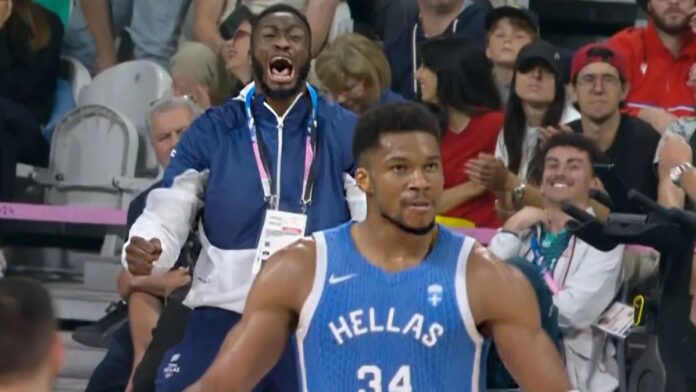 Στο διαδίκτυο κυκλοφορεί ευρέως ένα στιγμιότυπο που δείχνει τον Γιάννη Αντετοκούνμπο στο γήπεδο, με τον Θανάση να πανηγυρίζει ενθουσιωδώς στο παρασκήνιο.