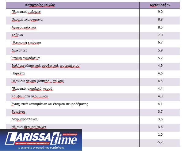 Ειδικότερα, ο Γενικός Δείκτης Τιμών Υλικών Κατασκευής Νέων Κτηρίων Κατοικιών τον Φεβρουάριο 2025, σε σύγκριση με τον αντίστοιχο δείκτη του Φεβρουαρίου 2024 παρουσίασε αύξηση 4,0%, έναντι αύξησης 5,9% που σημειώθηκε κατά τη σύγκριση των αντίστοιχων δεικτών του έτους 2024 με το 2023.
