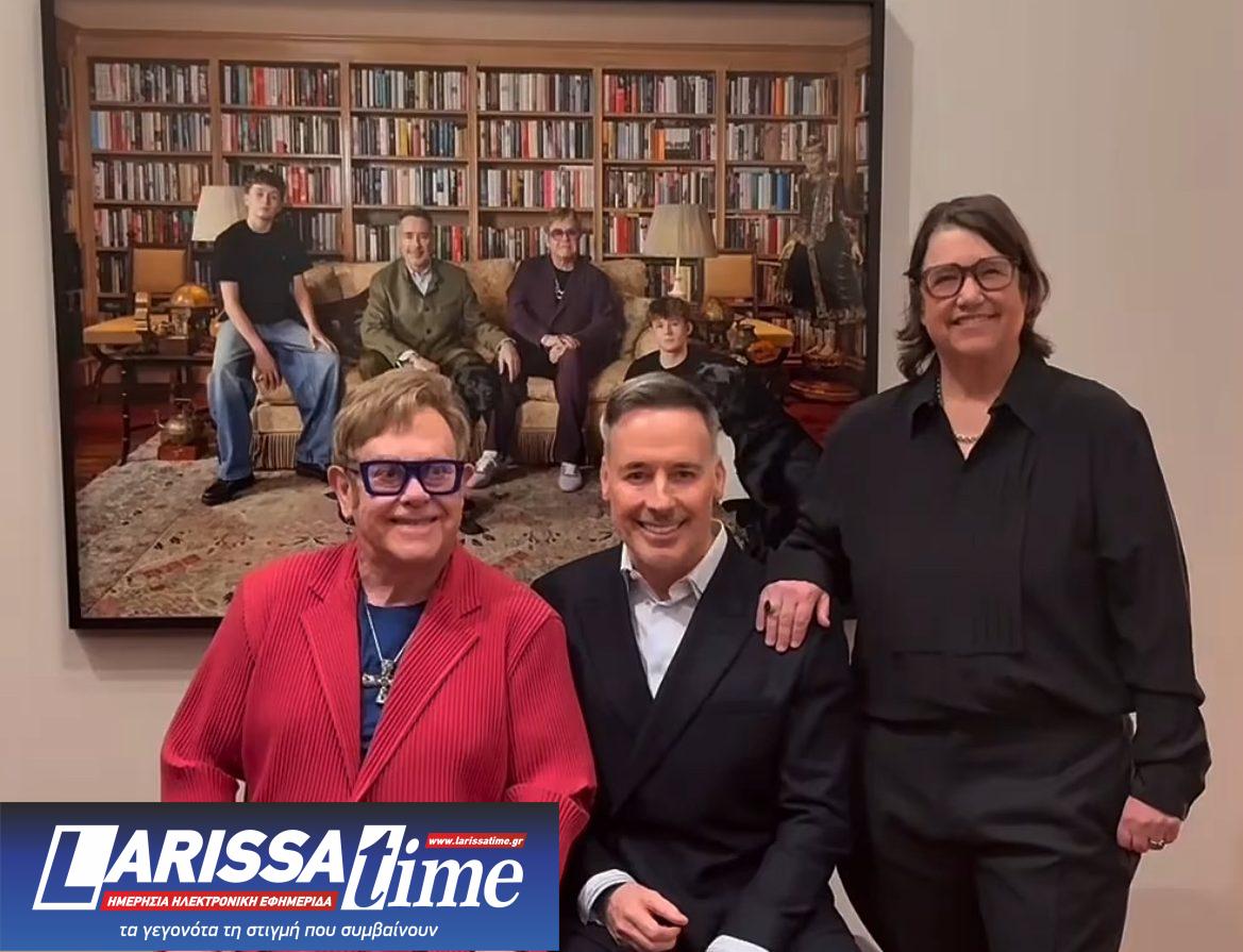Τη φωτογραφία υπογράφει η Αμερικανίδα καλλιτέχνιδα Κάθριν Όπι, η οποία απαθανάτισε την οικογένεια στη βιβλιοθήκη της κατοικίας τους στο Γουίνδσορ. Στο πορτρέτο, ο Σερ Έλτον εμφανίζεται καθισμένος φορώντας μωβ κοστούμι και χρωματιστά γυαλιά με ροζ φακούς, ο Φέρνις με πράσινο κοστούμι, ενώ οι γιοι τους, Ζάκαρι, 15 ετών, και Ελάιτζα, 13 ετών, φορούν μαύρα μπλουζάκια, ο ένας καθισμένος στο μπράτσο του καναπέ και ο άλλος στο πάτωμα κρατώντας ένα παιχνίδι σκύλου. Μαζί τους ποζάρουν και τα Λαμπραντόρ της οικογένειας, Τζόζεφ και Τζέικομπ.