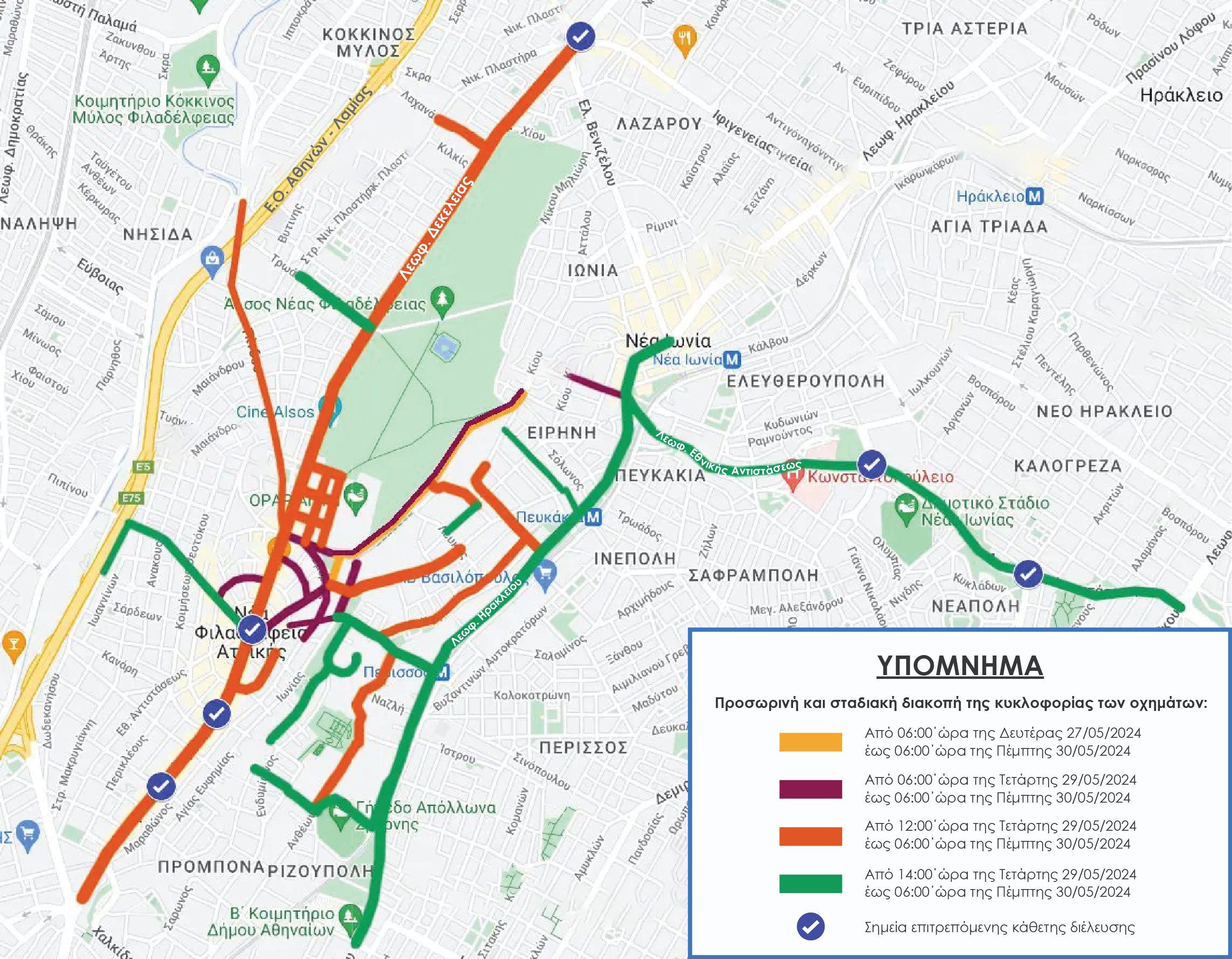 Πού θα διακοπεί η κυκλοφορία των οχημάτων