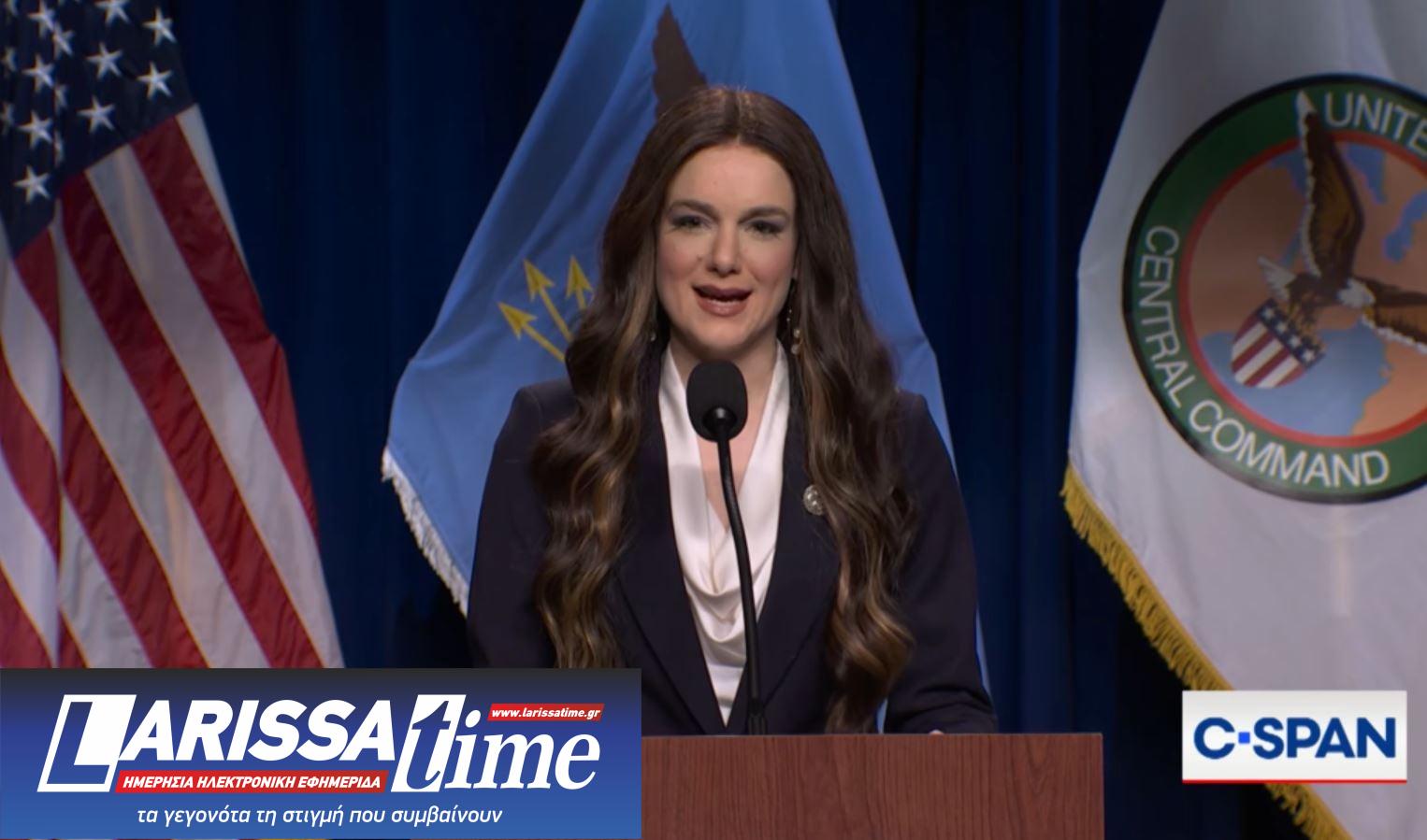 Υποστήριξε ότι ο αποχαιρετισμός της δεν είναι μόνιμος, αλλά ο Pete Hegseth που ενσάρκωνε ο Colin Jost πετάχτηκε λέγοντας: «Ναι, εκτός από το ότι είναι!».
