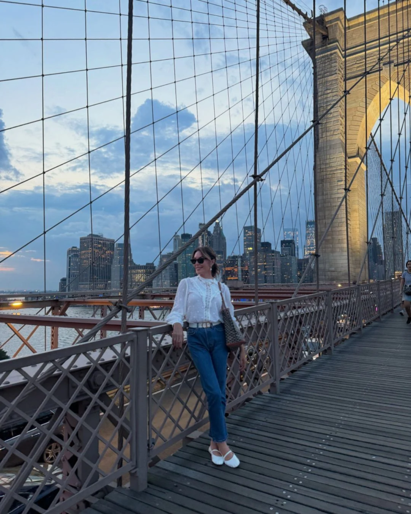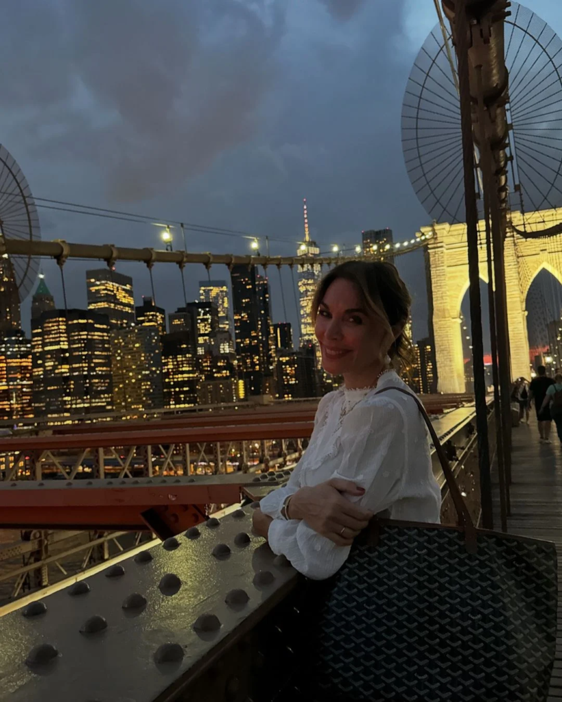 «Βόλτα το δειλινό στη ιστορική γέφυρα του Μπρούκλιν με το Λυδάκι μου. Η μαγευτική θέα σε βοηθά να αντιληφθείς μέσα σε λίγα λεπτά τι είναι η Νέα Υόρκη. Το άγαλμα της Ελευθερίας στο βάθος, οι επιβλητικοί ουρανοξύστες, το πανίσχυρο Μανχάταν, το ρομαντικό πολυπολιτισμικό Μπρούκλιν, ο ποταμός Ηστ Ρίβερ. Η γέφυρα ολοκληρώθηκε χάρη σε μια γυναίκα, την μαθηματικό Εμιλυ Ρόμπλινγκ. Ο σύζυγος της, που συνέχιζε το έργο του πατέρα του, παρέλυσε από τη νόσο των δυτών και έτσι η Έμιλυ επέβλεψε τις εργασίες για 11 χρόνια. Ήταν η πρώτη που πέρασε τη γέφυρα. Woman Power!!!» έγραψε στη λεζάντα του post.