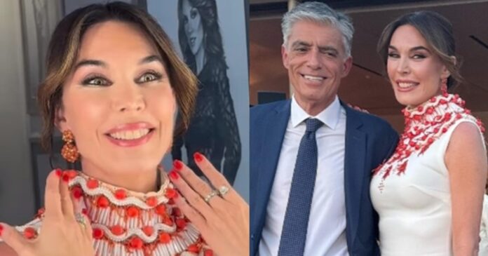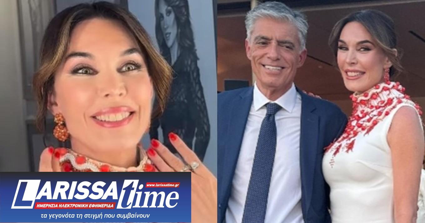 Η δημοσιογράφος ολοκλήρωσε το look της με κοσμήματα Imanoglou και τσάντα φάκελο σε off white απόχρωση.