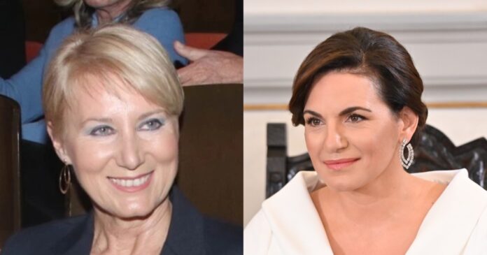 Ειδικότερα, οι δύο κυρίες επέλεξαν να φορέσουν εμπριμέ φορέματα σε κλος γραμμή. Η υπουργός φόρεσε ένα floral φόρεμα με ψηλό γιακά στον λαιμό, σε μάξι μήκος και σε παστέλ αποχρώσεις, με ροζ γόβες, ενώ η γιατρός φόρεσε ένα φόρεμα με V λαιμόκοψη και σε dark τόνους, με ψηλοτάκουνες γόβες με μπαρέτα και μαύρο blazer.
