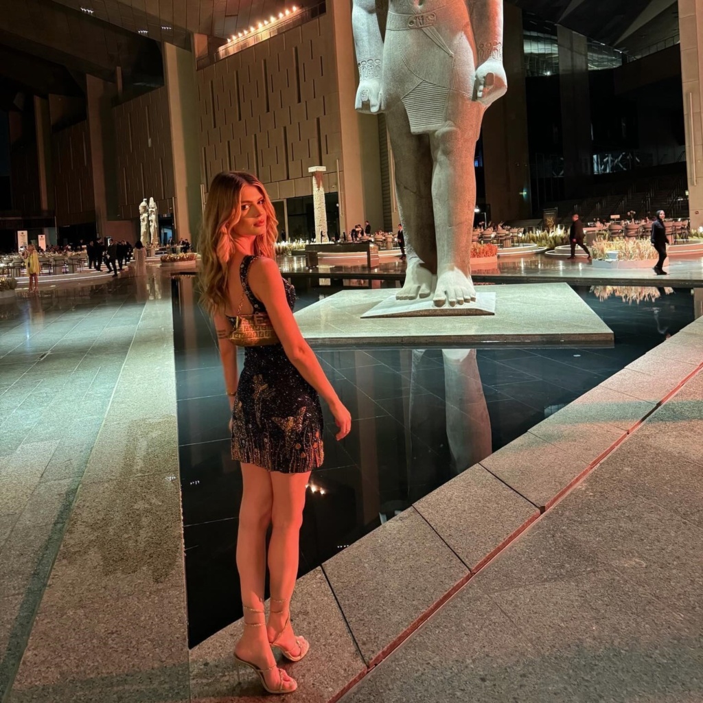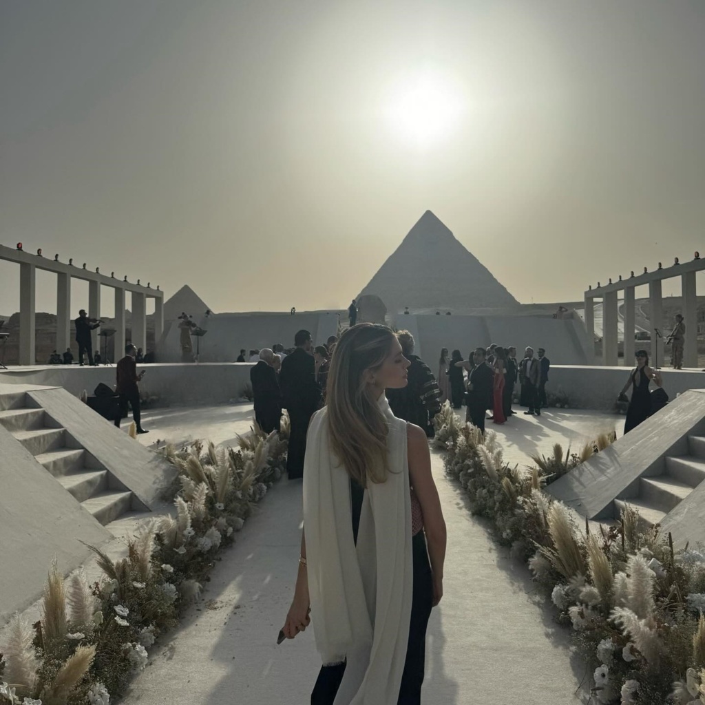 Στις τελευταίες φωτογραφίες που δημοσίευσε στον λογαριασμό της στο instagram, μας έδειξε το glam look της σε πολυτελή γάμο στο Κάιρο και το πάρτι που ακολούθησε με φόντο τις Πυραμίδες. Η ίδια ήταν πολύ κομψή με αέρινο μαύρο φόρεμα και ιβουάρ αέρινο μαντήλι περασμένο στον λαιμό της που ανέμιζε.