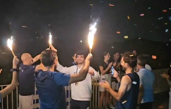 Ο Θόδωρος Τσελίδης χάρισε το πρώτο μετάλλιο στην Ελλάδα στους Ολυμπιακούς Αγώνες του Παρισιού, και τα μέλη της ελληνικής αποστολής του επεφύλασσαν αποθεωτική υποδοχή στο Ολυμπιακό Χωριό.