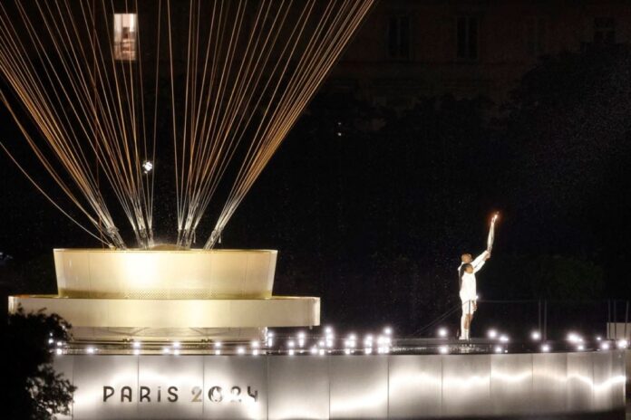Η ιδιαίτερη τελετή είχε τα πάντα, μουσική, χορό, θέαμα, ασταμάτητη βροχή, απρόοπτα και ένα εντυπωσιακό φινάλε. Η Ολυμπιακή Φλόγα, άναψε σε ένα αερόστατο και θα παραμείνει στον ουρανό του Παρισιού καθ’ όλη τη διάρκεια των Αγώνων.