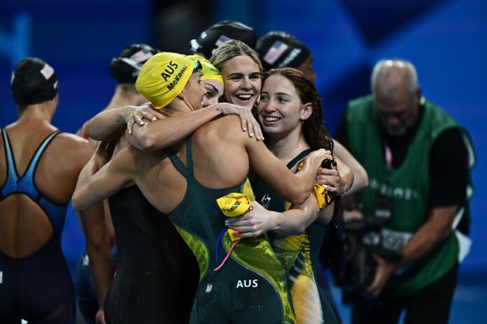 Οι Mollie O’Callaghan, Shayna Jack, Emma McKeon και Meg Harris της ομάδας της Αυστραλίας πανηγύριζαν το χρυσό τους μετάλλιο το Σάββατο όταν ο Ballard έκανε το σχόλιο.
