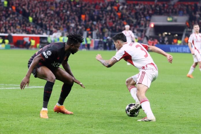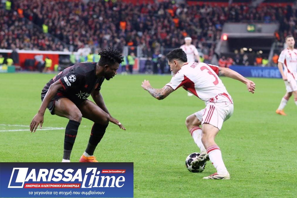 Πρώτη καλή στιγμή μόλις στο 4′ για τη Λεβερκούζεν, με τον Γκριμάλντο να βγάζει τη σέντρα από τα δεξιά, τον Σικ να παίρνει γυριστή κεφαλιά στο πρώτο δοκάρι και την μπάλα να περνάει για ελάχιστα έξω από το δεξί κάθετο δοκάρι του Τζολάκη.