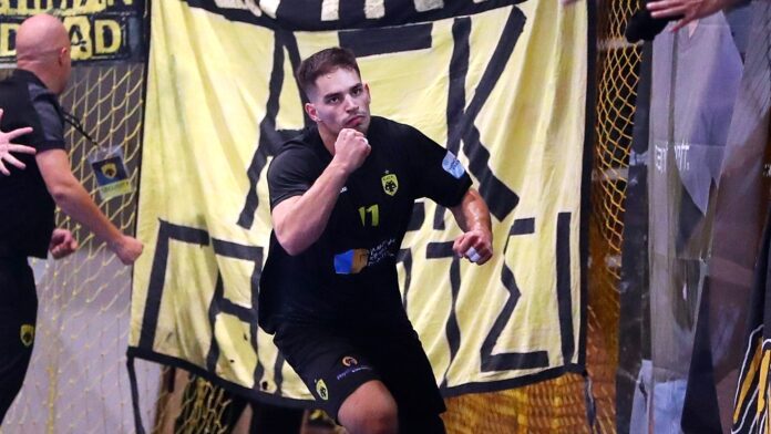 Η ΑΕΚ συνέχισε την εντυπωσιακή της πορεία στην Α1 χάντμπολ των ανδρών, επικρατώντας με 28-27 του Ολυμπιακού/Ομίλου Ξυνή στο μεγάλο ντέρμπι κορυφής, που έκλεισε την αυλαία της 8ης αγωνιστικής. Στην κατάμεστη αίθουσα «Γ. Κασσιμάτης» του ΟΑΚΑ, η «Ένωση» πανηγύρισε την όγδοη συνεχόμενη νίκη της στο πρωτάθλημα, παρέμεινε μόνη πρώτη στη βαθμολογία και πήρε μια άτυπη ρεβάνς για την ήττα της στον τελικό του Σούπερ Καπ στο Καματερό, όπου είχε χάσει με 24-23.
