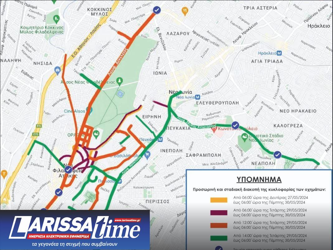 Ήδη, στην περιοχή της Νέας Φιλαδέλφειας, στις οδούς Καππαδοκίας, Πατριάρχου Κωνσταντίνου και Χρυσοστόμου Σμύρνης, εφαρμόζονται ρυθμίσεις με –κατά περίπτωση- προσωρινή και σταδιακή διακοπή της κυκλοφορίας και απαγόρευση στάσης και στάθμευσης.