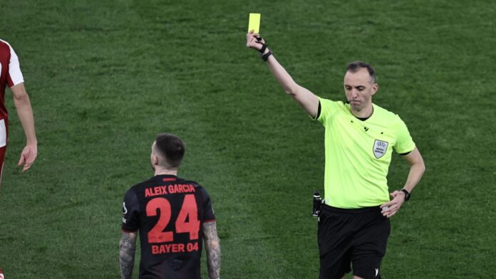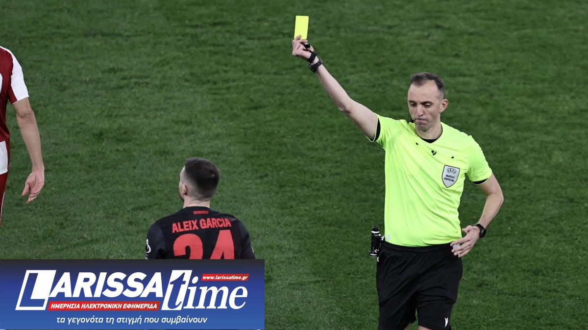 Η πρώτη στιγμή που εκνεύρισε τον Ολυμπιακό ήρθε όταν ο αγώνας ήταν ακόμη χωρίς σκορ. Ο Αλέις Γκαρθία έκανε σκληρό μαρκάρισμα πάνω στον Ποντένσε, προκαλώντας τις έντονες αντιδράσεις των παικτών του Ολυμπιακού. Ο Πινέιρο έδειξε κίτρινη κάρτα στον παίκτη των «ασπιρινών» και κράτησε τη Λεβερκούζεν με έντεκα παίκτες, ενώ το VAR δεν κάλεσε τον διαιτητή για επανεξέταση της φάσης. Η απόφαση αυτή διατήρησε την αριθμητική ισορροπία ανάμεσα στις δύο ομάδες, επηρεάζοντας τη συνέχεια του παιχνιδιού.