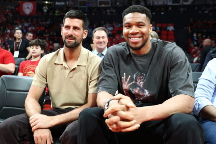 Μάλιστα δίπλα του κάθεται ο θρύλος του τένις, Νόβακ Τζόκοβιτς.