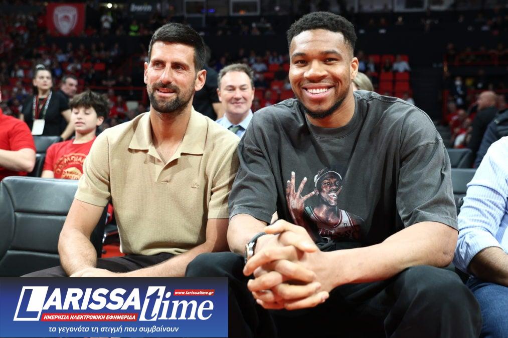 Στο γήπεδο των Πειραιωτών βρίσκεται ο σούπερ σταρ του παγκοσμίου μπάσκετ και της Εθνικής μας ομάδας, Γιάννης Αντετοκούνμπο, για να παρακολουθήσει την αναμέτρηση.