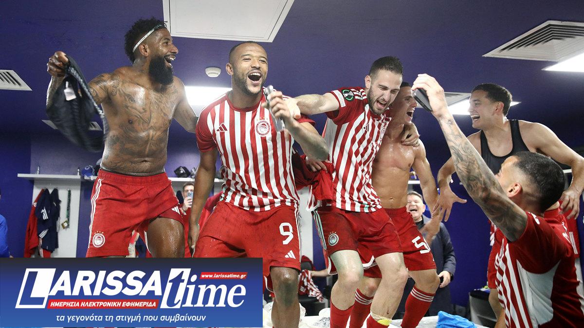 Τρελό πάρτι πρόκρισης στήθηκε στα αποδυτήρια του Ολυμπιακού μετά τη λήξη του δραματικού προημιτελικού εναντίον της Φενέρμπαχτσε, χαρακτηριστικό το στιγμιότυπα με τον Χοσέ Λουίς Μεντιλίμπαρ.