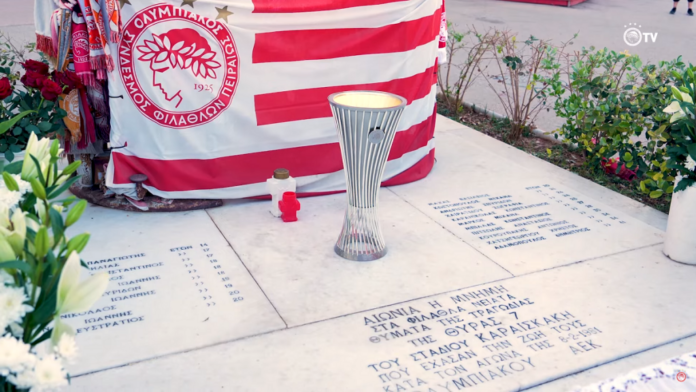 Θέλοντας να τιμήσει τη μνήμη του Μιλτιάδη Μαρινάκη, του Σάββα Θεοδωρίδη αλλά και των θυμάτων της Θύρας 7, το βαρύτιμο τρόπαιο του Conference League μεταφέρθηκε στους τάφους των δύο μεγάλων Ολυμπιακών, καθώς και στο μνημείο των φιλάθλων στο “Γ. Καραϊσκάκης”, όπου και τελέστηκαν τρισάγια.