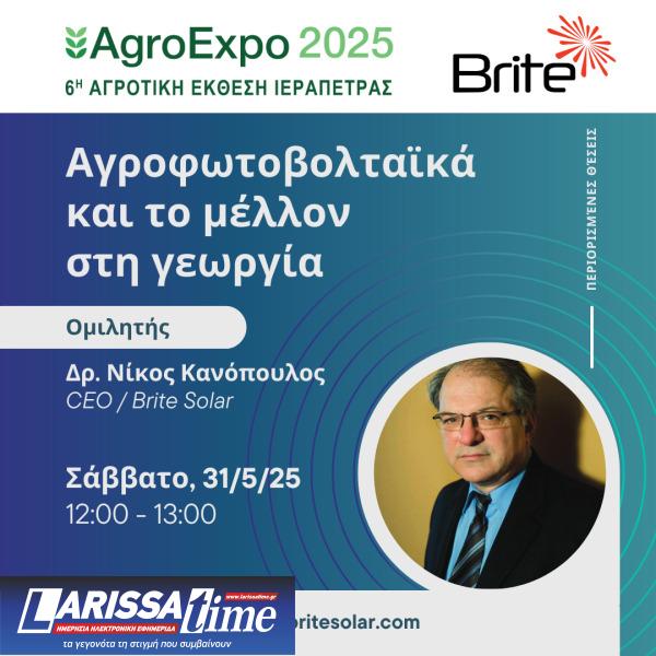Η συμμετοχή στην ομιλία είναι δωρεάν για το κοινό και θα ακολουθήσει συζήτηση στο περίπτερο της εταιρείας, όπου οι ενδιαφερόμενοι θα μπορούν να δουν από κοντά τις τεχνολογίες και να συζητήσουν τις ανάγκες τους με την ομάδα της Brite Solar.
