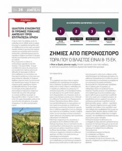 Την εµφάνισή τους έχουν κάνει οι πρώτες προσβολές από περονόσπορο στα αµπέλια, αυτό το διάστηµα που βρίσκονται στο βλαστικό στάδιο κατά το οποίο υπάρχουν ανθοταξίες στα 4-6 φύλλα και ο βλαστός έχει µήκος 8 µε 15 εκατοστά. Σηµειωτέον, οι συχνές βροχοπτώσεις, σε συνδυασµό µε την υψηλή σχετική υγρασία και τις θερµοκρασίες που επικρατούν αυτές τις µέρες είναι ιδιαίτερα ευνοϊκές για την εκδήλωση της ασθένειας. Οι γεωπόνοι του Περιφερειακού Κέντρου Προστασίας Φυτών Βόλου καλούν τους αµπελοκαλλιεργητές να προχωρήσουν σε έναν προληπτικό ψεκασµό µε κατάλληλο και εγκεκριµένο µυκητοκτόνο, ιδιαίτερα σε περιοχές όπου η ασθένεια εµφανίζεται συχνά και ιδιαίτερα όταν πρόκειται για ευαίσθητες ποικιλίες. Τονίζεται, επίσης, ότι στον ψεκασµό αυτό δεν συνιστάται η χρήση χαλκούχου σκευάσµατος, διότι προκαλείται καθυστέρηση στη βλάστηση.