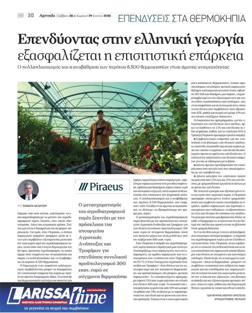 Αναλυτικά το αφιέρωμα της Agrenda για επενδύσεις στα θερμοκήπια μπορείτε να δείτε εδώ