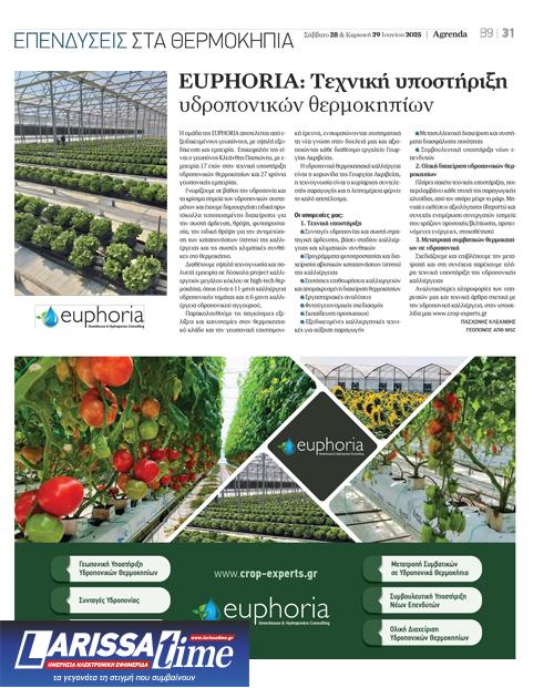 EUPHORIA: Τεχνική υποστήριξη υδροπονικών θερμοκηπίων