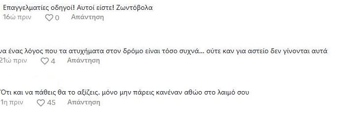 «Να ένας λόγος που τα ατυχήματα στον δρόμο είναι τόσο συχνά… Ούτε καν για αστείο δεν γίνονται αυτά», σχολιάζει ένας χρήστης της πλατφόρμας κάτω από το βίντεο.