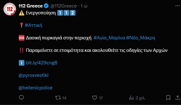 Στο μήνυμα του 112, πάντως, αναφερόταν η περιοχή Αγία Μαρίνα στη Νέα Μάκρη και όχι στο Γραμματικό, με αποτέλεσμα να προκληθεί αναστάτωση στους κατοίκους της περιοχής, σύμφωνα με το irafina.gr.