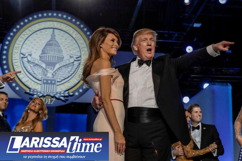 Ο Ντόναλντ Τραμπ με τη σύζυγό του Μελάνια κατά τη διάρκεια δεξίωσης μετά από την πρώτη ορκωμοσία του