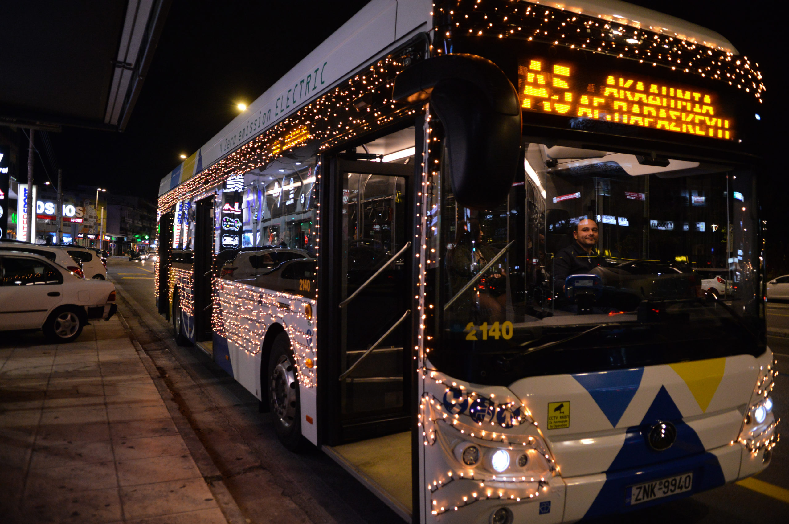 Εναρμονισμένα στο εορταστικό κλίμα, έξι λεωφορεία της ΟΣΥ (Οδικές Συγκοινωνίες) σε Αθήνα και Πειραιά πραγματοποιούν διαδρομές «ντυμένες» με φως, στέλνοντας το μήνυμα της ελπίδας και της αγάπης που εκπέμπει η γέννηση του Θεανθρώπου, αλλά και της προσμονής για μια τυχερή νέα χρονιά.