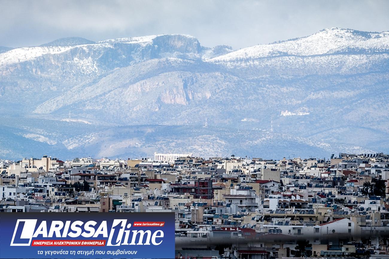 Οι ορεινοί όγκοι στα βόρεια προάστια της Αττικής «άσπρισαν» από την κακοκαιρία Elena.