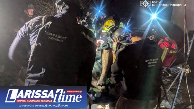 Ρωσικός πύραυλος έπληξε και προκάλεσε εκτεταμένες ζημιές σε διώροφο οίκημα στην πόλη Κρεβί Ρι της νοτιοανατολικής Ουκρανίας με αποτέλεσμα να τραυματιστούν πέντε άνθρωποι, δύο από τους οποίους ανασύρθηκαν ζωντανοί από τα συντρίμμια, ενημέρωσαν αξιωματούχοι (φωτογραφία, επάνω, από την επιχείρηση διάσωσης).