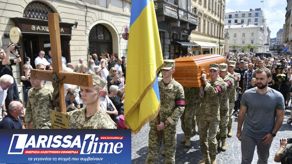 Χιλιάδες κόσμου παρευρέθηκαν στην κηδεία της Ιρίνα Φαριόν στο Λβιβ της δυτικής Ουκρανίας.