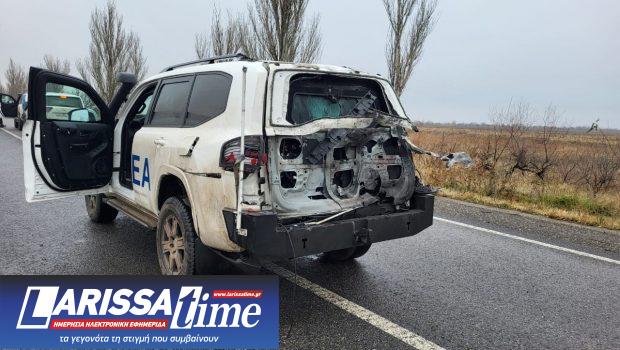 Μια φωτογραφία που αναρτήθηκε παράλληλα με τη δήλωσή του έδειχνε ένα όχημα με σαφή σήματα του ΔΟΑΕ, το πίσω μέρος του οποίου είχε υποστεί σοβαρές ζημιές.