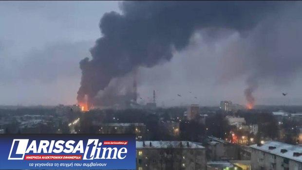 Σε βίντεο που αναρτήθηκε στο Telegram, του οποίου η αυθεντικότητα δεν έχει επαληθευτεί, ακούγονται ισχυροί κρότοι και φαίνονται φλόγες και καπνός να υψώνονται στον ουρανό.
