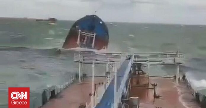 Ένα ρωσικό πετρελαϊκό τάνκερ με φορτίο χιλιάδων τόνων πετρελαϊκών προϊόντων υπέστη σοβαρό ρήγμα στη διάρκεια μιας σφοδρής καταιγίδας στον πορθμό του Κερτς, ενώ ένα άλλο τάνκερ εξέπεμψε σήμα κινδύνου, αφού υπέστη ζημιές.