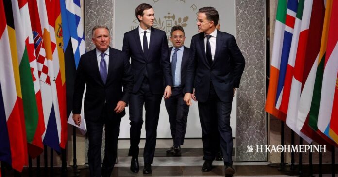 Στη χθεσινή συνάντηση στο προεδρικό μέγαρο των Ηλυσίων, συμμετείχαν 27 αρχηγοί κρατών και κυβερνήσεων από την Ευρώπη και τον Καναδά, αξιωματούχοι του ΝΑΤΟ και της Ευρωπαϊκής Ενωσης. Τις Ηνωμένες Πολιτείες εκπροσώπησαν ο ειδικός απεσταλμένος του Λευκού Οίκου Στιβ Γουίτκοφ και ο Τζάρεντ Κούσνερ, γαμπρός του προέδρου Τραμπ.
