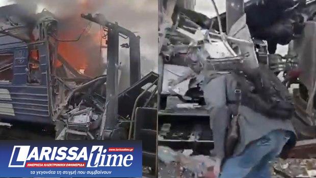 Από την επίθεση επλήγη αμαξοστοιχία με προορισμό το Κίεβο