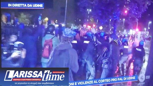 Συγκρούσεις διαδηλωτών με την αστυνομία σημειώθηκαν το βράδυ χθες Τρίτη στην πόλη Ούντινε της βορειοανατολικής Ιταλίας, όπου διεξήχθη αγώνας ποδοσφαίρου των εθνικών ομάδων της Ιταλίας και του Iσραήλ (φωτογραφία, επάνω, από το Χ).