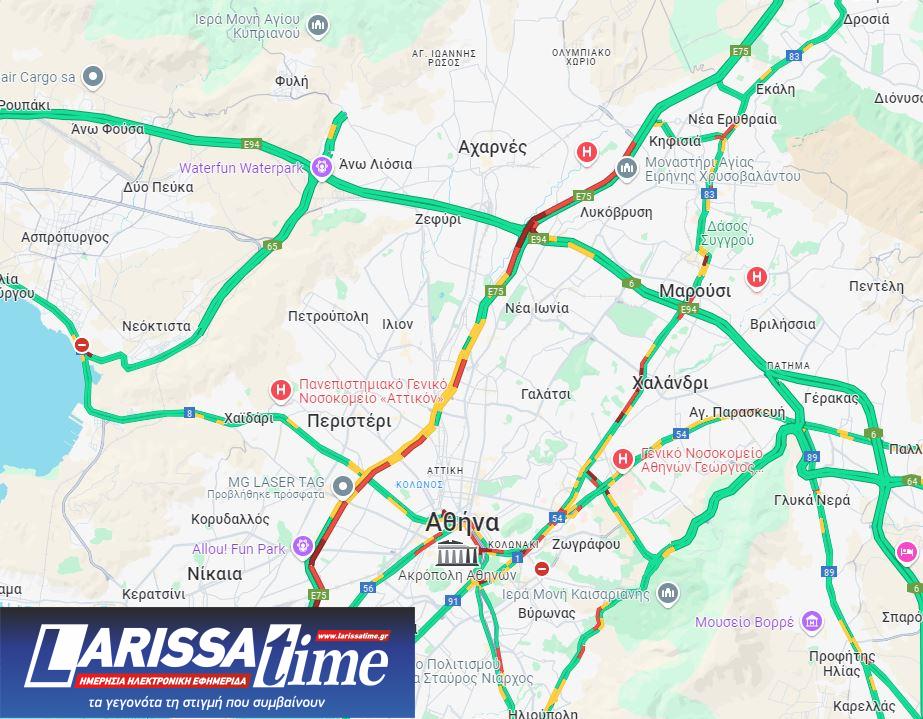 Συγκεκριμένα οι οδηγολι κινούνται με χαμηλές ταχύτητες από το ύψος της γέφυρας Καλυφτάκη στην Κηφισιά μέχρι τη Νέα Φιλαδέλφεια