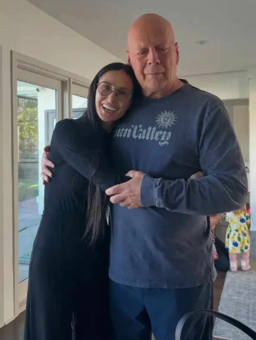 H Nτέμι Μουρ αγκαλιά με τον Μπρους Γουίλις τον Μάρτιο του 2025