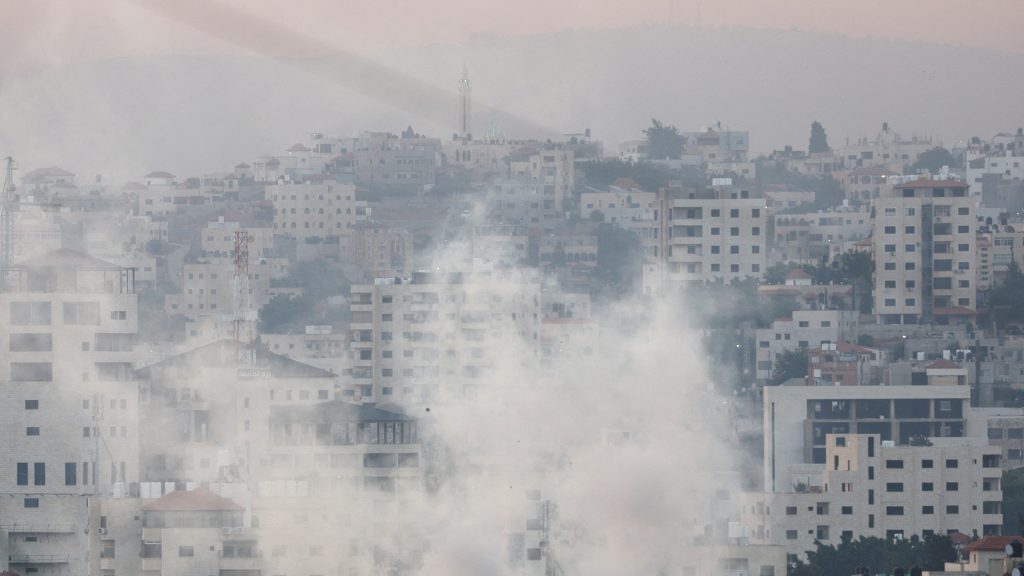 Smoke rises during an Israeli military operation in Jenin, in the Israeli-occupied West Bank July 3, 2023. REUTERS/Mohamad Torokman TPX IMAGES OF THE DAY