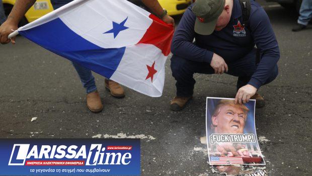 «Τραμπ, ζώο, κάτω τα χέρια από τη Διώρυγα», φώναζαν ρυθμικά διαδηλωτές, που έκαψαν πορτρέτα του Ρεπουμπλικάνου και της αμερικανίδας πρεσβευτή στον Παναμά, της Μαρί Κάρμεν Απόντε.