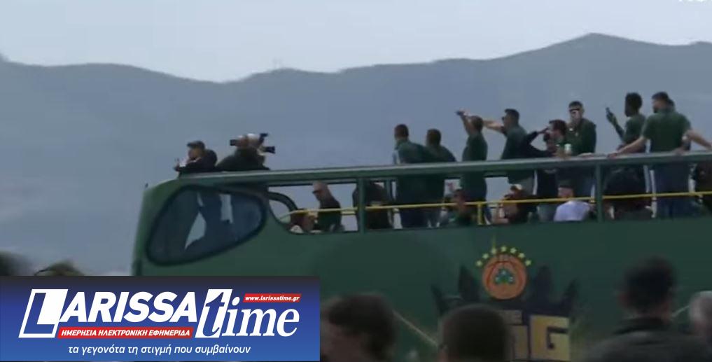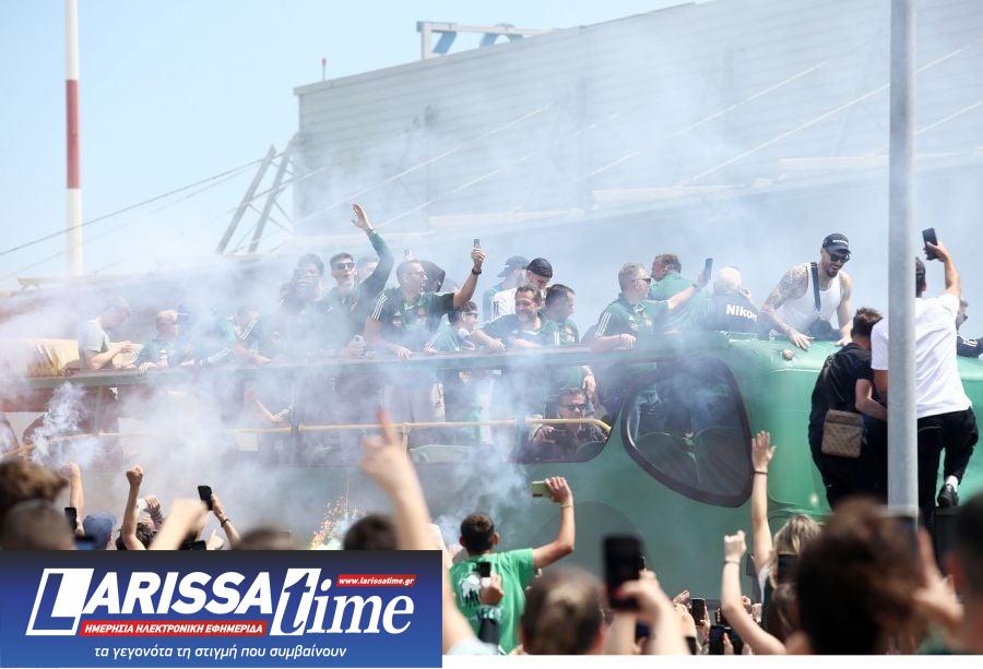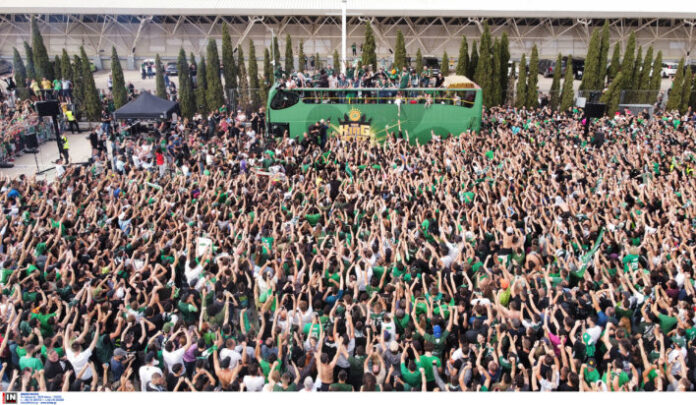 Ακολούθως το λεωφορείο άρχισε το… ταξίδι για το πάρκινγκ 5 του ΟΑΚΑ, προκειμένου η «πράσινη» αποστολή να γιορτάσει τη νέα ευρωπαϊκή επιτυχία της ομάδας με τον κόσμο που είχε αρχίσει να συγκεντρώνεται και στο κλειστό των Ολυμπιακών εγκαταστάσεων.