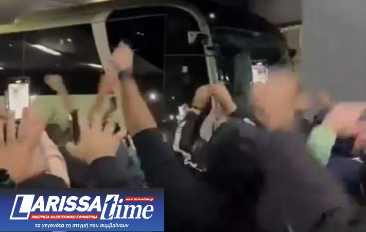 Η αποστολή αφίχθη στο ΟΑΚΑ λίγο μετά τις 23:00 και ακολούθησε το πανδαιμόνιο με συνθήματα και πυρσούς. Όταν μάλιστα εμφανίστηκε από το πούλμαν ο Εργκίν Αταμάν με υψωμένες τις γροθιές του, έγινε η… νύχτα-μέρα.