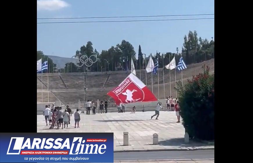 Οι οπαδοί της Σάμσουνσπορ μάλιστα άνοιξαν πανό προκειμένου να βγάλουν φωτογραφίες με φόντο το Παναθηναϊκό στάδιο και φώναξαν συνθήματα.
