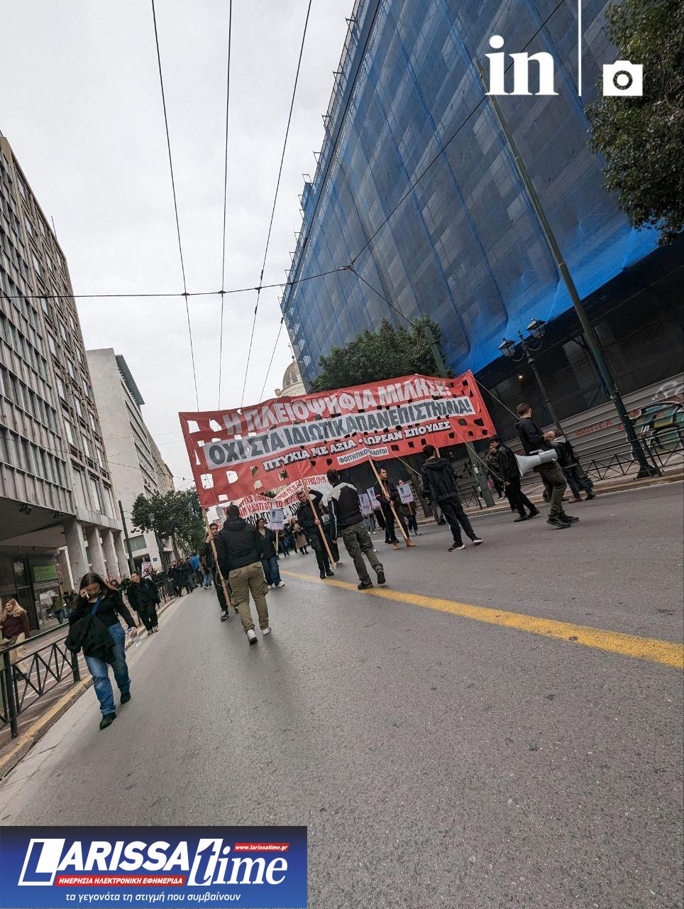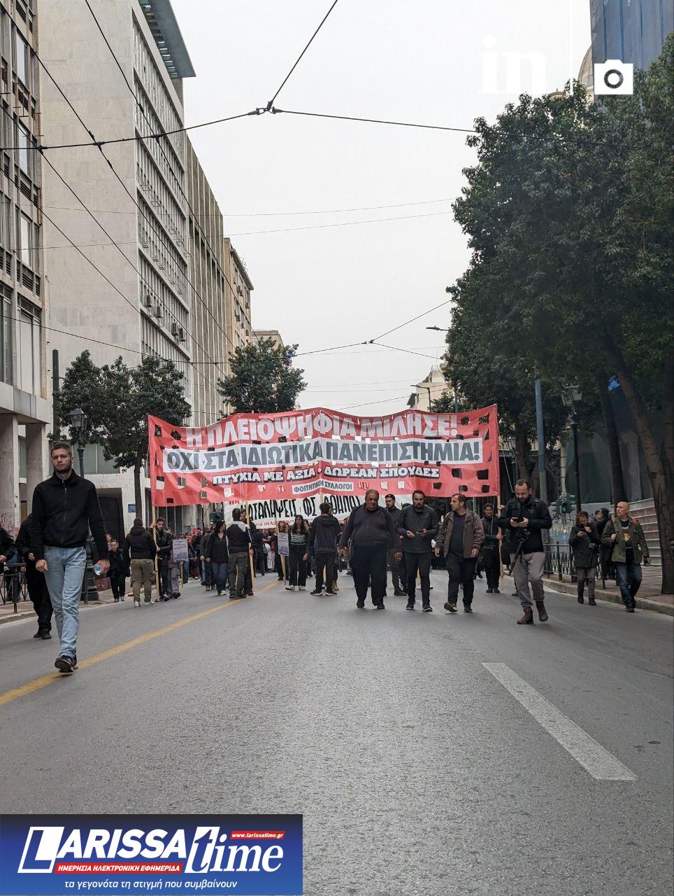 Φοιτητές, μαθητές και εκπαιδευτικοί βρίσκονται για ακόμη μία Πέμπτη στους κεντρικούς δρόμους της Αθήνας προκειμένου να δηλώσουν τη σθεναρή εναντίωση τους στο νομοσχέδιο της κυβέρνησης για την ίδρυση ιδιωτικών πανεπιστημίων.